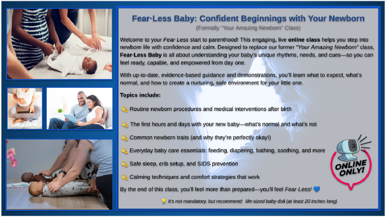 Each class offers evidence-based guidance, practical tools, and compassionate teaching that prepare you to welcome your baby without fear.